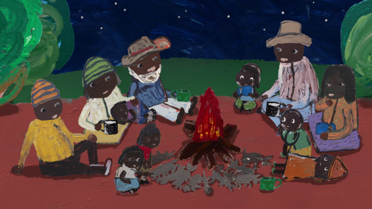 The centerpiece is an animated work titled Arrkutja Tharra, Kungka Kutjara, Two Girls. It delves into the reality of First Peoples’ experiences in Central Australia, chronicling the artists’ successes and struggles. Both renowned Town Camp artists, the two friends grew up at the Amoonguna Settlement in Northern Territory but wouldn’t reconnect until later in life, after both had witnessed a number of hardships.